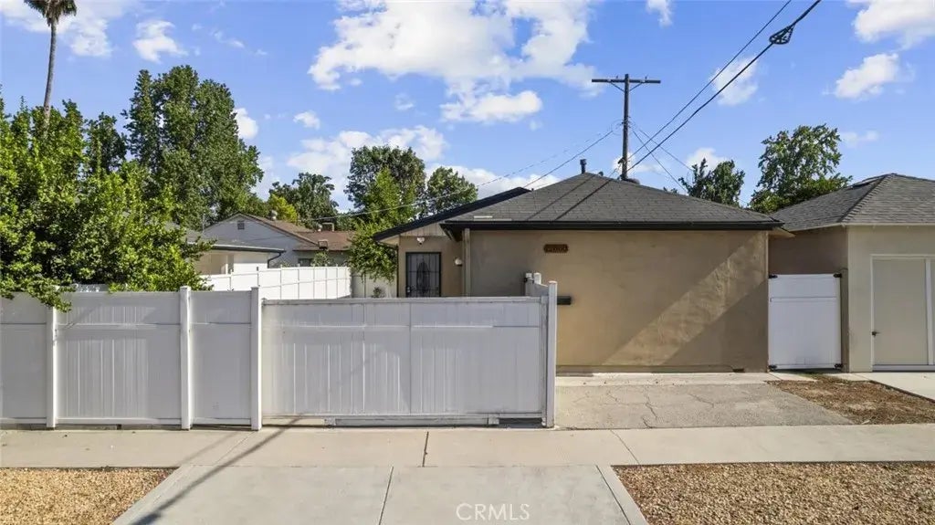 Charming and beautifully maintained, this ADU is located in one of North Hollywood's most desirable neighborhoods. Set behind a private gate, the property offers secure parking and a fully fenced outdoor area with white vinyl fencing, perfect for morning coffee, dining, or relaxing in your own space. Double-pane windows help with energy efficiency, and security cameras provide added peace of mind. A separate, dedicated storage area adds convenience. Inside, you will find an open-concept living, dining, and kitchen area with tile flooring throughout. The kitchen features granite countertops, a tile backsplash, and a full suite of appliances, including a washer and dryer, stove, dishwasher, microwave, and exhaust fan. Recessed lighting and crown molding add a clean, modern feel to the space. The bedroom includes laminate flooring, two closets, and a neutral color palette that suits any style. The full bathroom offers a walk-in shower, a granite single-sink vanity, tile floors, and recessed lighting. Central A/C and heating provide year-round comfort. This is a rare leasing opportunity in a quiet North Hollywood pocket. Washer and dryer are included. Property is Virtually Staged!