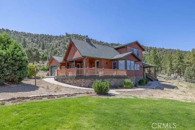 Welcome To This Stunning 5-acre ranch in the Elite Area of Hamilton Ranch, Where you can have your own YELLOWSTONE EXPERIENCE right here in our local San Bernardino Mountains. Where you are NOT part of the HOA, so you the freedom of endless possibilities of an AirBnB or create your own Dude Ranch experience. This property offers a Main House (3675 Sq FT) and a Charming Bunkhouse/Guest House (1200 Sq Ft), and a Spacious Barn/Garage, all thoughtfully designed and equipped with luxurious features, such as Radiant Heated Floors in all buildings, and PAID SOLAR! The MAIN HOUSE is described as a masterpiece, due to the well known Local Builder of the property and of course the custom craftsmanship of the interior. The living room is a sprawling haven of comfort and elegance, designed to be the heart of the home, where family and friends gather to relax and create lasting memories. The gourmet kitchen is a chef's dream, featuring high-end appliances, custom cabinetry, and beautiful countertops. It offers ample space for culinary creations. The bunkhouse/guest house is a charming addition to the property, offering 1100 square feet of living space. It comprises two cozy bedrooms and a well-appointed full bathroom, ensuring comfort and privacy for visiting guests. Additionally, a three-car garage, mudroom/laundry room, and a convenient quarter bath downstairs provide practicality and convenience. The property also features an impressive eight-car or RV garage / barn, providing ample space for vehicles, RV or equipment. The ranch is equipped with two wells, providing a reliable and in