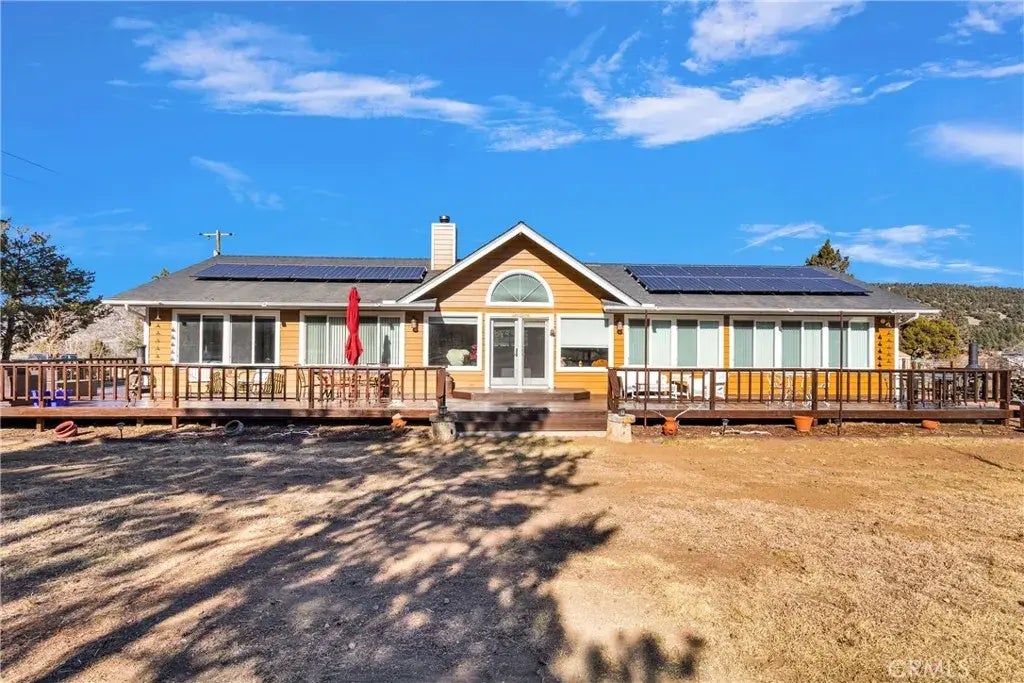 Open the gate a take a hike or horseback ride for days on the multiple trails. Or stay home to reap the benefits of the large full deck and saloon. Your turnkey dream Ranch is available in Big Bear City! This beautiful 5 Acre Ranch features a 4 bedroom 2 and half bathroom Home, attached 2 1/2 car garage, Free-standing canvas carport for large truck, Barn (currently setup like a Saloon) with Workshop, 4 Large Horse Corrals with shelters, Storage Shelters Galore, Paid 21 Solar Panels (with transferable warranty), Back-up 5,500 kw Generator, over 220 Trees and so much more. The home is 2x6 construction. Dual pane windows. Kitchen was remodeled with new cabinets with lots of built-ins and granite counter-tops in 2016. Kitchen cabinets feature spice pull-out and double trash compartment, Double Oven, Propane cooktop and built-in Microwave. Extra-large pantry. Indoor laundry closet with utility sink (washer and dryer are negotiable). New Bamboo Wood flooring in 2016. Pocket-doors in all the bedrooms on the south side of the home to allow the Wood Burning Stove to heat the entire home. Spectacular windows in the Living Room to enjoy the picturesque views. Property reaches street (Central Lane) to street (Willow Lane) with side entrance (7th Lane) for those trailers. The Ranch is laid out with 2 pastures, round pen for exercising the horses, and fenced wash rack. There is no shortage of water faucets, we have 18 water-hydrates. Lawn Equipment shed is 8x16. Storage shelter is 8x8. Free-standing Spa (new cover) to relax after the long days' work. The Garage has over 20 power outlets.