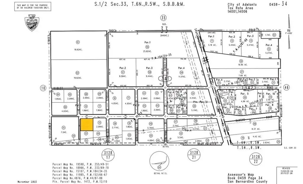 2.1 acres of industrial land for sale on Rancho Rd in Adelanto; APN: 0459-341-12. Zoned Manufacturing/Industrial (M/I) allowing for a variety of heavy industrial uses, including warehousing, truck terminal, cannabis cultivation and processing, and more. Water and electricity on paved Rancho Rd, with sewer nearby. Neighborhood businesses include Victor Valley Synthetic Marble, Magic Smog, Rauls Taco, Flight Auto Center, Calvary Chapel, and United States Postal Service. Site is located 0.5 miles from Highway 395 and 8 miles from I-15 with 300 feet of frontage on Rancho Rd. At 2 miles, this location is in proximity to support the Southern California Logistics Airport, which recently completed 3 million square feet of construction to welcome businesses such as Amazon, Iron Mountain, and the expansion of M&M/Mars. Buyer to verify all information contained herein. Agent and their representatives are not responsible for the accuracy of these claims.