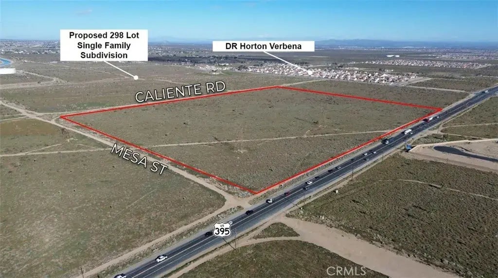 36.32 acres of prime real estate with unparalleled potential in Victorville, CA. This property is strategically located with approximately 1,770 feet of frontage on CA-395 offering superb visibility and accessibility. Water runs adjacent to the site in Caliente Rd., and sewer infrastructure is conveniently located nearby in Eucalyptus St. This versatile property boasts dual zoning designations with the southern portion designated as R-1 Single Family Residential and the northern portion as C-2 General Commercial, providing a wide range of development possibilities. Given the City of Victorvilles recent shift in stance towards commercial zoned properties, this site may offer an advantageous position for potential development as multi-family residences, townhomes, and/or small-lot residential units. The surrounding area is bustling with activity, witnessing significant residential growth with renowned developers like DR Horton, LGI Homes, and Legacy Homes completing and continuing developments nearby. LGI Homes progression on 550 single-family lots on Mesa St. to the east further underlines the areas potential. Additionally, a proposed 298 lot single-family subdivision borders the western boundary of the property, denoting increased growth and demand. Convenience is key, as the property is just a short distance from commercial amenities at the High Desert Gateway, located at the I-15 and Main St. interchange. With popular retailers such as Target, Tractor Supply Co., Planet Fitness, and more in the vicinity, residents and businesses alike will have easy access to everything t
