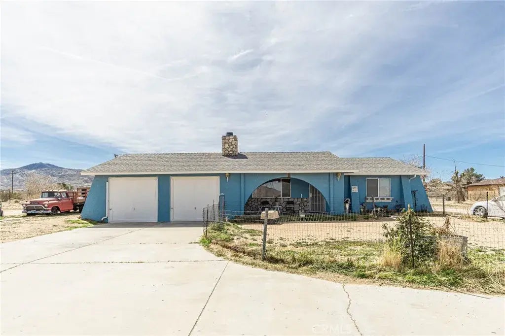 Experience the charm of this mini ranch set on just under 2 acres, offering horse property with 6 stables, corrals, and nearby trails. This well-appointed home features 3 bedrooms, 2 baths, a seamless floorplan, and freshly painted interiors. Relax by the inviting fireplace in the family room while enjoying panoramic views of snowcapped mountains in a serene desert setting. New septic, new leech line, and new pit installed. Located in a quiet area, this is ideal for those seeking tranquility. Convenient access to Big Bear Lake, and close to shopping and dining. Embrace the desert lifestyle of this exceptional mini ranch today.