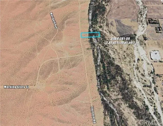 2.81 ac Rural Living parcel on Floreate Rd along the west side of the Mojave River in Oro Grande/Adelanto. River flows above ground in this area. Back half of lot drops down into River area. Access via Hwy 395 to Colusa Rd, to Helendale Rd, to Purple Sage/Morning Glory, to Floreate. 4x4 Vehicle recommended. Seclusion and the River call you. 9 Lots total available on/off Floreate (6 on River, 3 off). Please contact Listing Agent for more information.