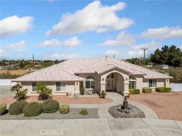 !!!DRAMATIC PRICE REDUCTION!!! Just WOW! This is the one that everyone drives by & slows down to REALLY check it out! So much curb appeal! Check out this estate quality home, estate sized lot. Close to Apple Valley Country Club & golf course. Checks all of the boxes! Beautiful custom Deserada home. Immaculate inside & out. 2 SETS OF SOLAR PANELS-ONE IS PAID OFF, ONE IS LEASED. The floorplan allows for ALL options-plenty of BR's, very large bonus room currently used as office area but could be used as theater room, game room, etc. Formal & informal living & dining areas, Beautifully appointed kitchen with all of the cabinet space you could wish for, including a large pantry. Kitchen opens onto family room with fireplace so the entertainment options here are limitless. Large dining nook adjacent to kitchen as well. All BR's are good sized. Split floorplan that includes BR & full BA at one end of house-ideal for guests, inlaws, etc. Oversized finished garage. Master BR is huge with fireplace & large BA with garden tub, oversized vanity area, large walk in closet. Laundry room has extra storage-in fact this home has so much storage through out-you will NEVER run out of space. New carpet in family room & master BR. Some other carpeted areas are only a few years old. Vaulted ceilings further increase the feeling of spaciousness. The large lot is fenced & x-fenced with white rail fence & stone pillars at front. Meticulously done colored rock yard areas, concrete curbing, trees & shrubs. Circle drive & other extensive exterior concrete work. Large fountain near entry gives a nice a