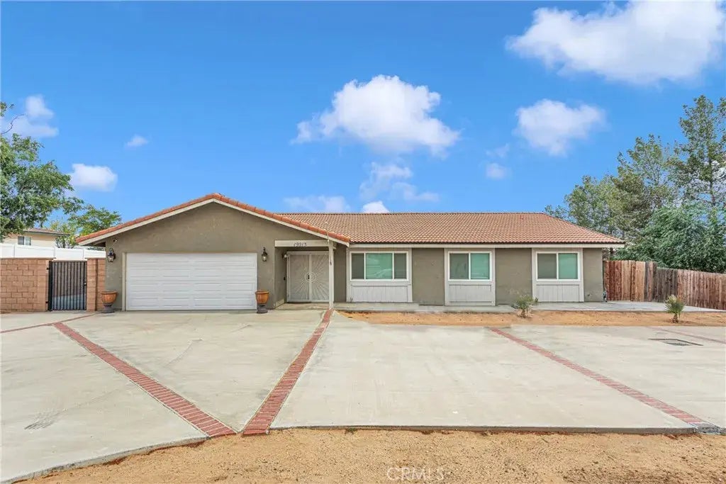 Welcome to this meticulously updated home in the desirable Desert Knolls area of Apple Valley. This stunning property boast three bedrooms and 2.5 bathrooms, all set on a generous 0.9 acre lot. The home is equipped with owned solar panels, providing energy efficiency and savings. As you step inside, you'll immediately notice the high-quality finishes and modern upgrades. The updated kitchen features sleek quartz countertops and newer black stainless steel appliances, making it a chef's delight. The bathrooms have also been tastefully remodeled with tiled showers, offering a spa-like experience. The open floorpan is enhanced by a wood look tile flooring throughout, providing a cohesive and elegant look. The spacious living room is perfect for cozy evenings with a woodburning stove. The permitted sunroom adds valuable living space and offers a great spot to relax. Outdoor living is a breeze with the Alumawood patio, complete with fans and electrical, ideal for entertaining or enjoying a quiet evening. Additionally, the charming courtyard provides a serene and inviting entrance to the home. The property is fully fenced, ensuring privacy and security. Practical amenities include an indoor laundry room and updated windows that enhance energy efficiency and comfort. This home is conveniently located close to shopping, schools, and the highway, making it an ideal choice for families and commuters alike. Don't miss the opportunity to own this turnkey home!