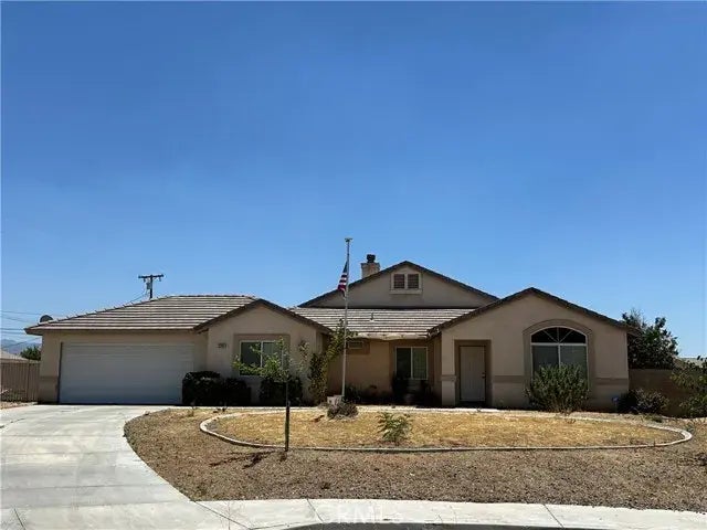 Welcome to your dream home located in the highly sought-after area of Vineyard Apple Valley. This stunning residence offers an impressive 5 bedrooms and 3 full bathrooms, providing ample space for comfortable living. Step inside to discover a spacious family room seamlessly connected to a formal dining area, perfect for hosting gatherings and creating cherished memories. The huge living room, featuring a cozy fireplace, invites relaxation and warmth, ideal for those cool evenings. The open kitchen is a chef's delight, boasting plenty of storage to keep everything organized and within reach. The indoor laundry area adds convenience to your daily routine. Designed with a split floor plan, this home ensures privacy and functionality. High ceilings enhance the sense of space and grandeur throughout. The large master bedroom is a true retreat, offering a serene escape from the everyday hustle and bustle. The master bathroom is a luxurious haven, complete with a separate shower and tub, dual vanity sinks, and a walk-in closet that will impress even the most discerning buyer. Step outside to enjoy a fenced backyard with possible RV access, perfect for outdoor activities and entertaining. The attached 2-car garage provides ample parking and storage space. This home is located on a peaceful cul-de-sac, offers both tranquility and convenience. Experience the perfect blend of elegance and comfort in this exceptional Vineyard Apple Valley home. Don't miss the opportunity to make it yours!