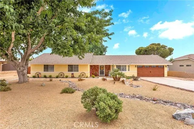 Huge price improvement! Discover your dream home in the prestigious Spring Valley Lake Equestrian Estates in Apple Valley! This stunning property welcomes you with warmth and comfort as soon as you step through the front door. Boasting several new upgrades including, beautifully crafted custom front doors, gates, and garage door, along with a fresh coat of exterior paint. Beautiful custom ranch-style ceiling fans, and exquisite wood grain tile that flows seamlessly throughout the home. New state-of-the-art, self-cleaning microwave combination convection oven and fully paid-off solar panels. With 3 bedrooms and 2 bathrooms, the home features a beautifully upgraded kitchen setting the stage for culinary adventures and a spacious bonus room with built-in bookshelves. The open floor plan and cozy fireplace create a relaxing ambiance. Step outside to your private oasis with an inground pool and spa, both safely fenced for peace of mind. Experience the fantastic perk of having fully paid-off solar panels, ensuring you enjoy energy savings and sustainability from the moment you move in! The backyard offers a tree house, a horse barn/storage shed, vinyl fencing in the back, a block wall separating your property from the neighbors for privacy, and a large shade tree providing a peaceful retreat. Don't miss the chance to own this incredible gem!