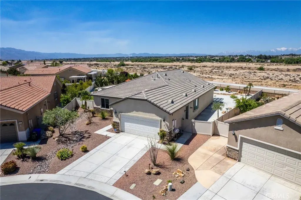 Nestled within the serene Del Webb 55+ community in Apple Valley, this beautiful home epitomizes comfort, luxury, and outdoor living at its finest. Built in 2011, this spacious abode spans 2,076 square feet, offering ample space for relaxation and entertainment. As you approach the property, you're greeted by a sprawling lot that beckons with its inviting atmosphere. The party-ready backyard is a focal point, boasting an outdoor kitchen where culinary delights come to life, alongside a shimmering pool and spa, perfect for soaking up the California sun. After a refreshing dip in the solar-heated pool, gather around the fire pit to unwind and share stories under the starlit sky. The artificial turf, wrap-around patio and water-conserving landscaping provide a lush, low-maintenance oasis for outdoor enjoyment. Step inside, and you're greeted by a meticulously crafted interior that exudes charm and sophistication. The remodeled bathrooms feature modern amenities, including a custom shower where you can glide in on roller skates for a touch of whimsy and fun. A cozy electric fireplace, accented with ship plank detailing, adds warmth and ambiance to the living space. Every corner of the home has been professionally decorated, reflecting a blend of elegance and comfort. The pice de rsistance is the large 12' patio door that frames breathtaking views of Mount Baldy. Whether you're sipping your morning coffee or hosting a soire, the vistas from this vantage point are nothing short of spectacular, providing a daily reminder of the natural beauty that surrounds you. In summary, this h