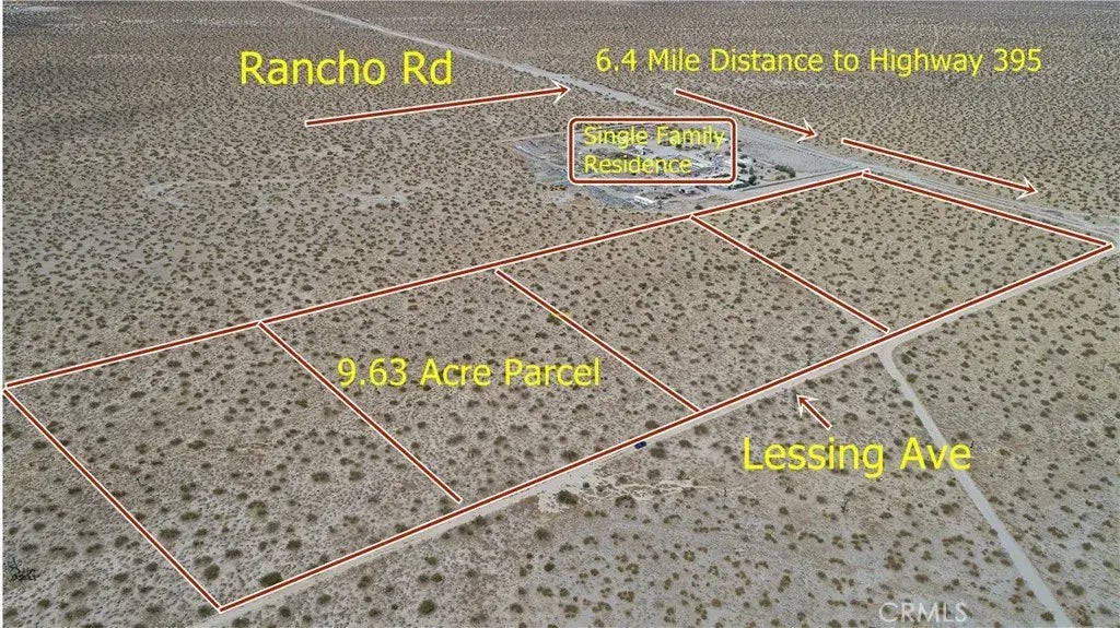 Great Investment Opportunity to own this almost 10 acre parcel. Either build or to keep this property for the near future in your portfolio! easy to get to this parcel Rancho Rd is a good road to drive to the property, and very easy to find, just drive 6.4 miles strait from from Highway 395 west on Rancho Rd and make a left on Lessing Ave, go about 1500 feet and the property is on your left. There is a residence nearby and the address is 6155 Rancho Rd Adelanto CA, 92301 that you can use in your GPS as destination and find your way from there, Easy access to travel north on the I-15 to Las Vegas and south on the I-15 to Rancho Cucamonga, Fontana and all the cities down below. The High Desert is now the future home of the recently approved High Speed Train from Apple Valley to Las Vegas and to the south to Rancho Cucamonga. The project is expected to break ground in the Victor Valley soon and be completed in over the course of the next few years, this projected is expected to bring in jobs and boost the economy of the High Desert.