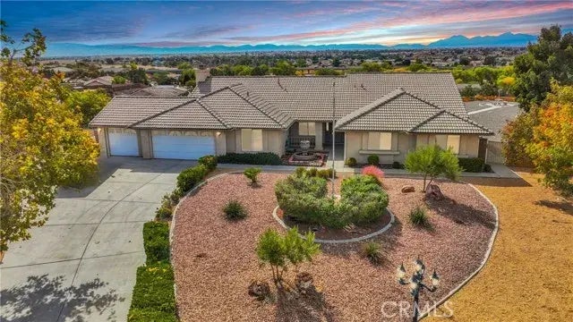 Welcome to Apple Valley! Check out these AMAZING panoramic views! This property boasts many amenities. The home features 5 bedrooms and 3 full bathrooms. A library/office area, large Living room area, large Kitchen with lots of seating and entertaining space. The exterior of the home is FULLY LANDSCAPED front and back! The back area has a walkway with seating towards the back of the property to enjoy sunset and sunrises, plus an area with planter boxes made out of Brick, a shed area enclosed and separate from the rest of the backyard. This home also features PAID OFF SOLAR! The 3 car garage has a drive through option to easily access the back! The patio is fully covered! Lets not forget RV ACCESS!! Dont miss out!