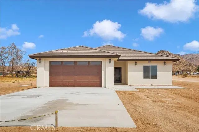 Brand New construction! This new 4 bedroom 2 bathroom home is located is a desirable area of Apple Valley. As you step inside you will notice the modern feel of Quartz countertops, tile flooring throughout, paid off solar and an extra deep covered patio. The home located on a paved road and is close to schools.