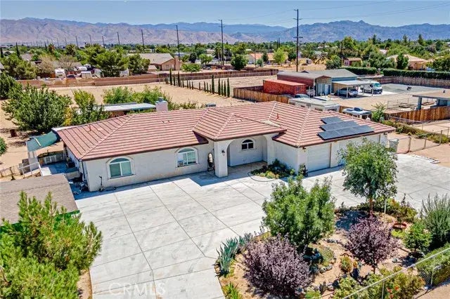 Welcome to this beautiful custom home conveniently located in the heart of the Hesperia! Home Built 2016 ,2089sqft plus approximately360sqft(permitted) . You will be hard-pressed to find a beautiful garden decorated with very luxurious stone and a very well-maintained landscaped. The back yard, which is like a garden, is planted with many fruit trees and has a storage. Fully fenced in and has two gates, one of which is an electric automatic gate. There is a wide concrete front yard and concrete on the side too. Permitted patio of over 500 square feet. It is perfect for a movie theater or parties.Two master suites with walk-in closet. Built fireplaces in the living room. Custom kitchen with granite counter tops .Reduced price $20,000!!! There is a solar installation, so there is almost no electricity bill. Solar payment is only $94.81. Currently, the seller has three rooms as the Mother in Law home, with a custom-built door for private entry, which can be returned to the buyer if they wish. Come and see such a beautiful this house.