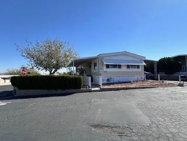 Awesome updated double wide mobile home in a senior park. This home is on a large corner lot with lots of privacy fencing and greenery. It is 1440 sq ft. and 2 bedroom/2 bath with both bedrooms having their own bathroom. The kitchen is open to the family room and had beautiful granite counter tops with all appliances included. There is also a large living room and dining room area. The covered front porch is spacious and has newer indoor/outdoor carpet. The rear door has a ramp for easy access from the carport. This home is updated with new double pane windows and a newer A/C unit and two storage sheds. This is a must see!