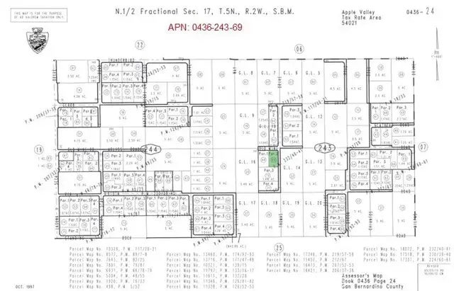 1.1 Acres (Apn: 0436-243-69) GPS: 34.525836, -117.110020 This residential lot is located in Apple Valley, CA. The town of Apple Valley is situated in San Bernardino County, located in the Mojave Desert region. This lot is outside the city limits and within the Apple Valley Unified School District. The San Bernardino County has zoned the lot Apple Valley Residential (RS-1). Overhead electricity is on site. Thunderbird County Water District services the areas water needs. The adjacent lot is also for sale. Apple Valley is a charming town located in the high desert region of California. With its picturesque landscapes and clear blue skies, it offers a serene escape from the bustling city life. The town is known for its annual Apple Valley Airshow, showcasing impressive aerial displays and attracting aviation enthusiasts from far and wide. The majestic Mojave River flows through the area, providing opportunities for outdoor activities like fishing, hiking, and camping. Apple Valley's community spirit is evident in its local events, such as farmers' markets and cultural festivals, making it a welcoming and vibrant place to visit or call home. This property does not yet have an address. While the boundary lines on the map offer a glimpse, they are only approximate. A Buyer should verify boundaries, zoning and utilities, ensuring every aspect aligns with their vision for the property.