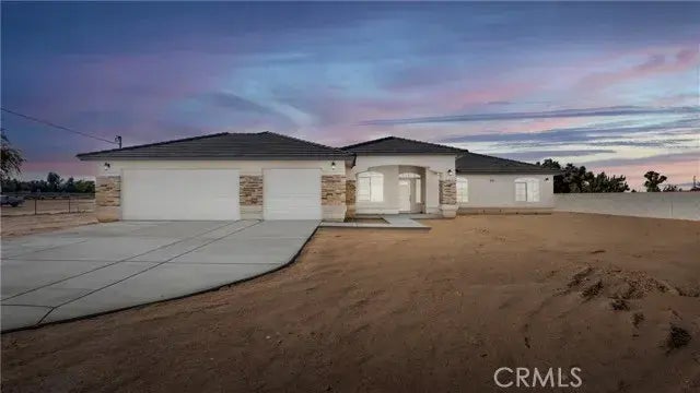 GORGEOUS New Construction with an open floorplan. Situated in South-west Hesperia on a large Acre lot. Four Bedrooms & 2.5 Baths. Large Kitchen with with water fall countertop island, tile flooring, lots of cabinets & large pantry. Master with Large Closets & Separate Modern Tub & Shower. Family Room w/ F.P & tile flooring. Formal Dining Area, Breakfast Nook, Indoor Laundry & 3 car garage. Covered patio and a huge acre lot. Solar is installed with the minimum standards as required by the state and the solar is owned.