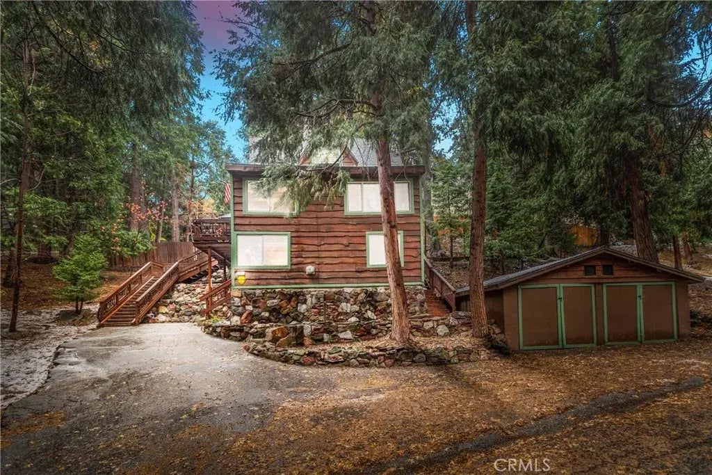 Welcome to The Silver Spruce Cottage, your enchanting mountain escape nestled among towering pines and blossoming dogwoods on three serene lots, including two adjacent parcels. Situated on a peaceful street and professionally remodeled and decorated, this cottage offers an idyllic blend of tranquility and accessibility. Just minutes from Lake Arrowhead Village, with its vibrant array of shops, restaurants, and seasonal activities, the cottage is also conveniently close to local amenities including a gym, steakhouse, and other essential services. Inside, the cottage combines rustic charm with modern sophistication. The updated kitchen is perfect for culinary enthusiasts, while the bathrooms are stylishly appointed. Wide-plank flooring and wood-beamed ceilings throughout evoke a cozy, inviting atmosphere. Outdoor living spaces offer serene settings to enjoy the forest and its wildlife, ideal for those seeking a peaceful retreat. The property includes a detached two-car garage, providing generous storage options and convenience. With ample additional parking and situated on a plowed and maintained road, accessibility is assured year-round. Offered furnished and decorated, The Silver Spruce Cottage is a place where once you arrive, you may never want to leave.