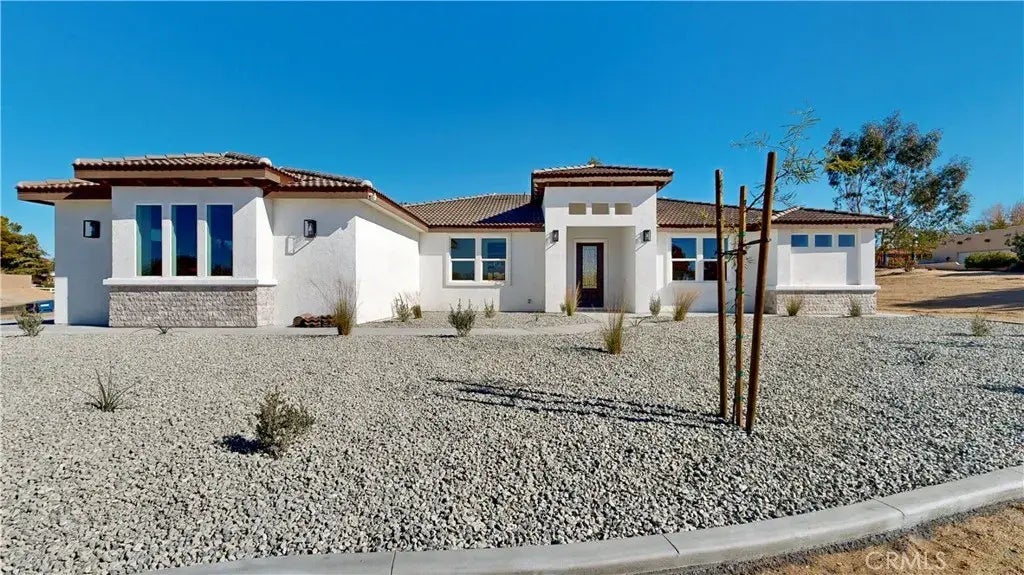 ~ Luxury New Construction Home located in Desert Knolls Area ~ Come view this elegant home which offers a bright crisp atmosphere. This Custom 4-bedroom 2.5-bathrooms, 2562 SF home will not disappoint. Large open concept living room with a fireplace and full height accent tile. Formal dining room or bonus room. Kitchen area has a walk in panty, oversized Island/wet bar with waterfall quartz and cabinet doors on both sides for storage. Built in convection/microwave oven. 36-inch 5-Burner Built in cooktop. Lots of cabinets which include soft close and a lazy susan. Kitchen is open to the living area. Area for 2-refrigerators (kitchen and laundry room). The master suite offers a large coffee bar, cabinetry, seperate soaking tub, large walk in tile shower with two shower heads, sit down vanity, two sinks, seperate water closet and large walk in closet with shelves. All bedrooms offer walk in closets. 10ft ceilings throughout. 8ft garage doors. Solar is paid in full. Concrete walk way all the way around the home, large rear patio under the roofline. Scenic view of the mojave river and city lights at night.