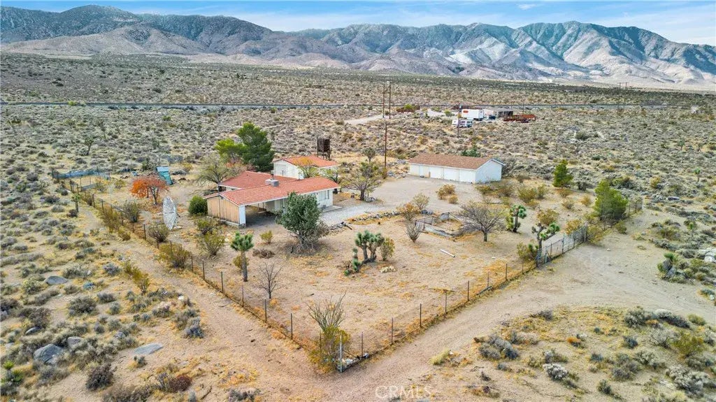 This 1-bedroom, 1-bathroom home is a desert gem, with stunning panoramic views of the valley and the Big Bear Mountain backdrop. Nestled above the Gem Track, the property is spread across 5 acres, offering both privacy and tranquility. The home is in immaculate condition and features a spacious great room with a cozy fireplaceideal for entertaining. The country-style kitchen offers exceptional storage and opens to a large indoor laundry room with ample space. In addition to the main house, the property includes a carport, a detached 4-car garage, and an extra detached 1-car garage with a man cave/workshop area. Located on a quiet dirt road with a fenced yard, this home is on hauled water and offers the perfect desert living experience. A true retreat ready to be called home! Owner will Carry!!! $100k down. 4% interest rate. 15 Year loan.