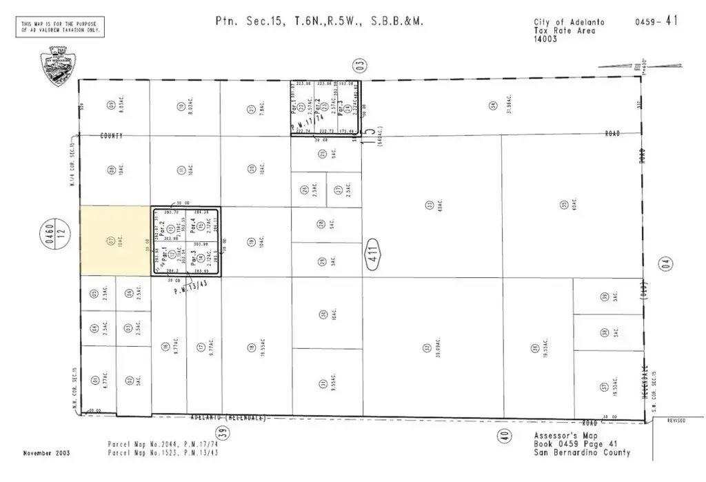 10 acres of industrial land for sale on Desoto Ave in Adelanto; APN: 0459-411-07. Zoned Airport Development District (ADD) this lot permits for a variety of industrial and commercial uses, including warehousing, truck parking, outdoor storage, and cannabis cultivation/processing. This location is also within a Qualified Opportunity Zone and eligible for potential tax benefits. Neighboring businesses LKQ Auto Parts & Salvage, Thi?n Vi?n Chn Nguyn Buddhist Meditation Center, West Victor Valley Shooting Club, and more. This location is in proximity to support the Southern California Logistics Airport, whose tenant roster includes Amazon, Boeing, GE Aviation, Kuerig Dr. Pepper, M&M/Mars, Newell Rubbermaid, and more. Less than one-half mile to Highway 395, 12 miles to Interstate 15, and 70 miles to the Ports of Los Angeles. This site is also approximately 25 miles from BNSFs future Barstow International Gateway (BIG), a state-of-the-art intermodal facility spanning 4,500-acres designed to revolutionize international logistics and distribution regionally and domestically. Buyer to verify all information contained herein. Agent and their representatives are not responsible for the accuracy of these claims.