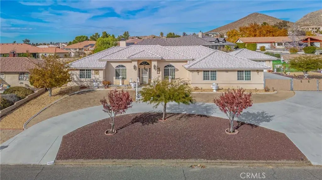 DREAM HOME!! Located in one of the most desirable Desert Knolls area of Apple Valley and right behind St. Mary Hospital!! Corner Lot with access from both streets! This absolutely immaculate 3 Bedrooms, 2 Baths home offers a very spacious 2,369 square feet of living space with an additional 534 square feet of attached 2 car garage which has been turned into a entertainment room with ducted AC vents but could be converted back to garage easily. There is a detached 2 car garage. Grand entrance through high arch porch with tall pillars! Formal entrance to the formal living room, formal dining room with dual fireplaces. Separate family room is opened to Island Kitchen with walk-in Pantry, stainless steel appliances, breakfast Nook overlooks a huge covered patio, and beautiful back yard with fruit trees, shrubs and rose bushes. An exceptionally large primary Master Suite with slider out to Patio and 2 Windows for lots of light. The primary Master Bath has Vanity with 2 sinks & a Jetted Tub, walk-in Shower and walk-in closet. In house separate Laundry room has tons of Cabinets & Laundry Sink. RV Parking, Circle Drive. Many shade trees in front and side yard. Gorgeous mountains and neighborhood view!! MOTIVATED SELLER PRICED COMPETITIVELY TO SELL FAST!!