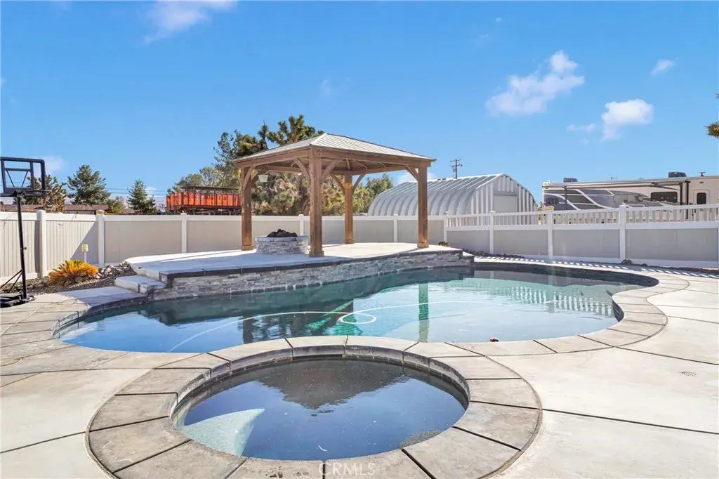 Let's cut to the chase, inground saltwater pool & spa, firepit, attached and detached garage/shop, massive covered patio, remodeled kitchen sitting on a rare large lot...keep reading, it only gets better. This incredible 4-bedroom, 4-bathroom home sits on over an acre of land, zoned for horses, chickens, and livestockperfect for anyone craving space and possibilities! Dive into summer with your 2019-built saltwater pool and jacuzzi, complete with a firepit for unforgettable evenings. The backyard is a party paradise, ready for BBQs, celebrations, and relaxation under the stars. Inside, youll fall in love with the remodeled kitchen featuring white shaker cabinets, sleek quartz countertops, recessed lighting, and stainless steel appliances. The open floor plan boasts beautiful wood plank tile flooring and a cozy wood-burning fireplace, perfect for gathering with loved ones. This home offers two master bedrooms, ideal for multi-generational living or guests. The primary suite features a huge walk-in closet thatll make organizing a breeze! Need space for your toys? Theres RV parking with a hookup, plus a 750 sq ft metal garage with water and electricityso many possibilities! Enjoy your mornings on the wraparound porch (complete with TV hookups!) or take advantage of the massive half-moon driveway for ample parking. And dont forget the new HVAC system and money-saving solar panels with an average electric bill of just $177/monthNO lease, NO lien! All this in a rare oversized lot in a desirable Apple Valley neighborhood, close to shopping and amenities. PLUS, the seller is offeri