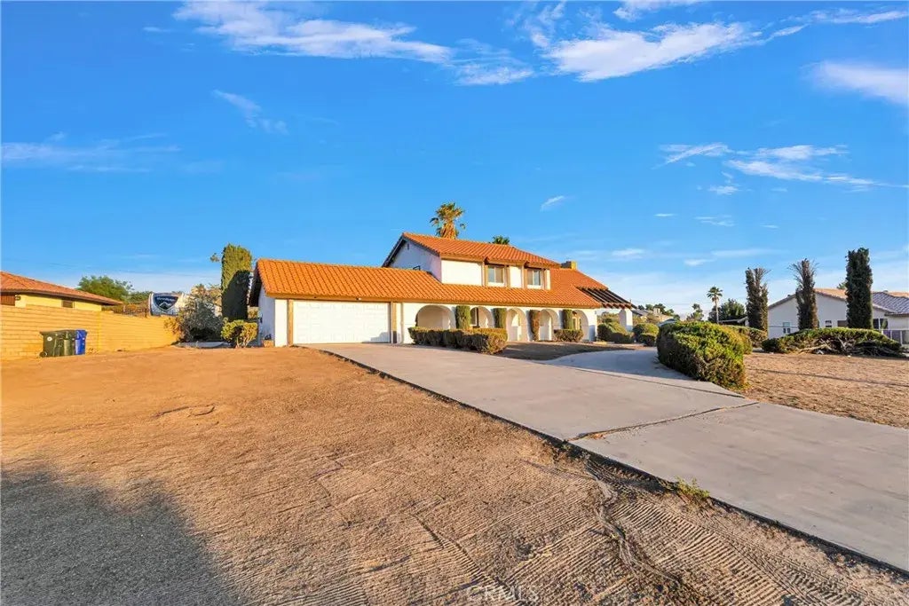 * * Mediterranean Spanish Style * * Charming home in the desirable area of Apple Valley (SKYLINE/SUNSET HILLS) **Turn Key** This updated home boasts over 2,200 SQFT, 4 bedrooms 3 bathrooms. Upon entry, you are greeted with an abundance of space due to the open concept & high ceilings. New Windows, Upgraded Laminate , Quartz Countertops, Custom Backsplash, Beautiful Stained Cabinets, Tile showers. All Interior & Exterior Recently Painted.***High Ceiling with Custom Wood Paneling In Family Room with a connected WetBar *** Lot SIZE 30,800 Bring Your RV *** Stunning View ***