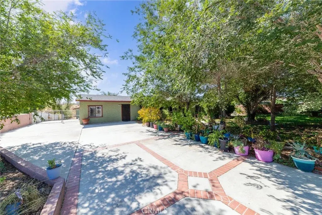 This garden-lover's home features an Elegant KITCHEN with granite countertops, and a spacious combined family and dining area. In addition to the FOUR bedrooms, one of the property's standout features is a large BONUS ROOM currently used as a 5th BEDROOM (permitted area). Rich color laminate flooring extends throughout the house. The property is FENCED, with nearly half enclosed by a block wall and chain link towards the back. To the side of the front lawn, you'll find a LONG concrete driveway leading to a DETACHED two-car GARAGE, ideal for a future ADU and even room for RV Parking. The generous backyard includes a playset, a shed used for STORAGE, and ample space for outdoor activities. Enjoy the benefits of UPGRADES like dual-pane windows throughout, a remodeled kitchen, water softener system and a gracious permitted addition made by the previous owner. This property offers added privacy and a tranquil setting. This house is perfect for a visit, and with its EXCELLENT layout, it offers the potential for high return.
