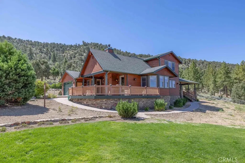 Welcome To This Stunning 5-acre ranch in the Elite Area of Hamilton Ranch, Where you can have your own YELLOWSTONE EXPERIENCE right here in our local San Bernardino Mountains. Where you are NOT part of the HOA, so you the freedom of endless possibilities of an AirBnB or create your own Dude Ranch experience. This property offers a Main House (3675 Sq FT) and a Charming Bunkhouse/Guest House (1200 Sq Ft), and a Spacious Barn/Garage, all thoughtfully designed and equipped with luxurious features, such as Radiant Heated Floors in all buildings, and PAID SOLAR! The MAIN HOUSE is described as a masterpiece, due to the well known Local Builder of the property and of course the custom craftsmanship of the interior. The living room is a sprawling haven of comfort and elegance, designed to be the heart of the home, where family and friends gather to relax and create lasting memories. The gourmet kitchen is a chef's dream, featuring high-end appliances, custom cabinetry, and beautiful countertops. It offers ample space for culinary creations. The bunkhouse/guest house is a charming addition to the property, offering 1100 square feet of living space. It comprises two cozy bedrooms and a well-appointed full bathroom, ensuring comfort and privacy for visiting guests. Additionally, a three-car garage, mudroom/laundry room, and a convenient quarter bath downstairs provide practicality and convenience. The property also features an impressive eight-car or RV garage / barn, providing ample space for vehicles, RV or equipment. The ranch is equipped with two wells, providing a reliable and in