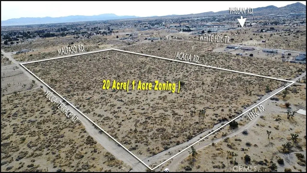 TRULY ONE-OF-A-KIND PROPERTY 20 Acre Land in 1 Acre Zoning(RS-1) in very desirable area, located just a few blocks from downtown Phelan. An exceptional, great investment opportunity to own a land in a growing rural community. With its proximity to schools( Serrano High School, Pinon Mesa Middle School), Post Office, Market, minutes away from skiing and all sorts of mountain activities at Mountain High Ski Resort in neighboring Wrightwood. You will enjoy all four seasons living in Phelan and the opportunity to see the snowcapped mountains of Wrightwood from your new property!