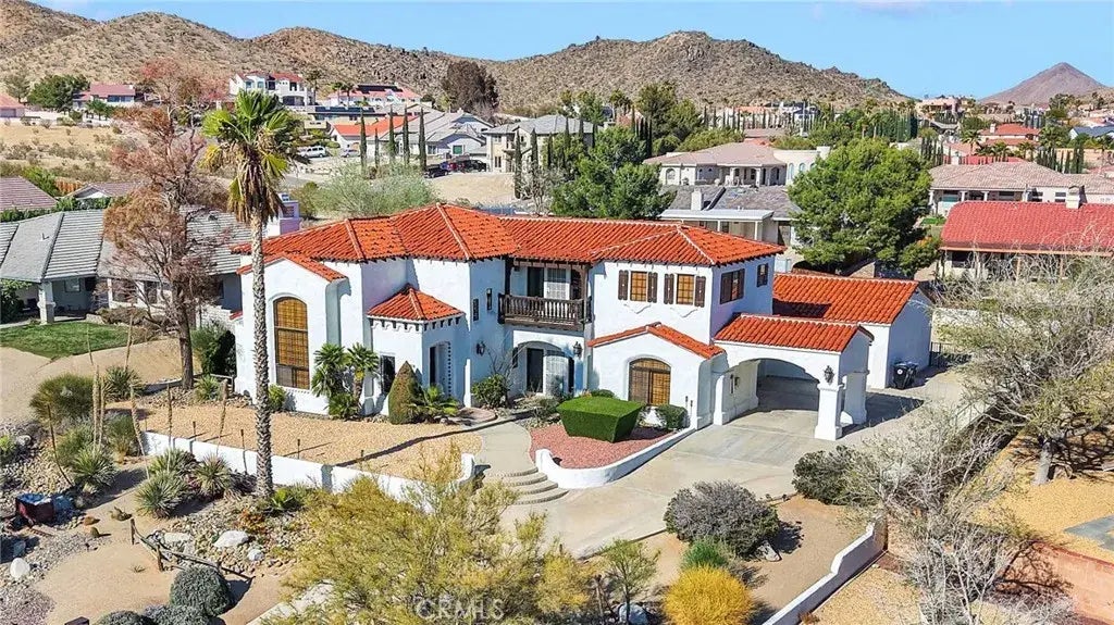 One-of-a-Kind Luxury Home in Upper Desert Knolls! Located in one of Apple Valleys most sought-after neighborhoods, this stunning custom home offers unmatched elegance and breathtaking views of the mountains, valley, and city lights. Sitting on nearly half an acre, it is conveniently located just minutes from top-rated schools, shopping, dining, and St. Marys Hospital. Featuring 4 bedrooms, 3 bathrooms, and 3,042 sq. ft. of living space, this home feels like a high-end luxury retreat. Thoughtfully upgraded with beautiful engineered hardwood floors throughout both levels and natural limestone flooring in all three bathrooms, every detail has been meticulously designed. The spa-like master bath features a floor-to-ceiling glass steam shower, a deep soaking tub with a view, and high-end James Martin vanities with quartz countertops. Step inside to soaring 20-ft ceilings with detailed wood beams, a grand chandelier, and a custom-tiled fireplace in the living room. The gourmet kitchen boasts an oversized island with an additional sink, custom cabinetry, a built-in refrigerator, and exquisite recessed lighting under a beautifully crafted wood beam ceiling. The formal dining room, with its arched entryway and classic chandelier, adds a touch of timeless sophistication. French doors lead to the serene backyard, where a pergola awaits for summer gatherings and relaxing evenings. The nicely sized office can easily be converted into a 4th bedroom. Plus, there's ample parking for vehicles and recreational toys! Sq. Ft. not verified. Information deemed reliable, not guaranteed.