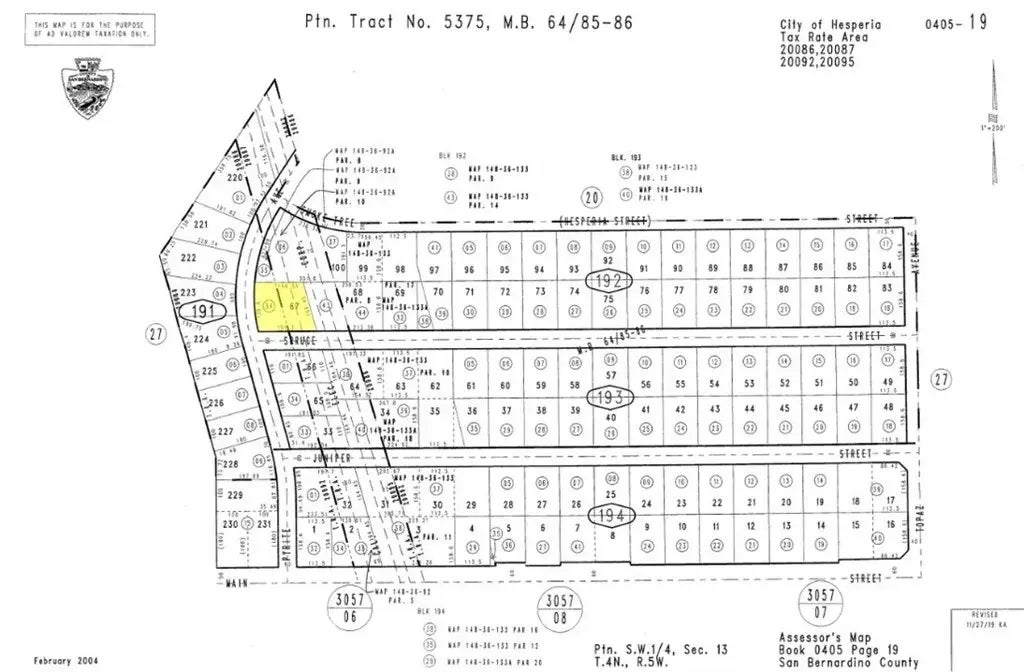 0.65 AC of residential vacant land is now available in Hesperia, CA. Situated at the corner of Pyrite Ave. and Spruce St., this prime location offers convenient access just minutes from the Main St. and I-15 interchange. Within a two-mile radius, you'll find major retailers and amenities, including Walmart, OReilly Auto Parts, Kaiser Permanente, Aldi, and the High Desert Gateway shopping center, home to Target, Bath & Body Works, Planet Fitness, and more. Prospective buyers are strongly encouraged to verify easements and setback lines before submitting an offer.