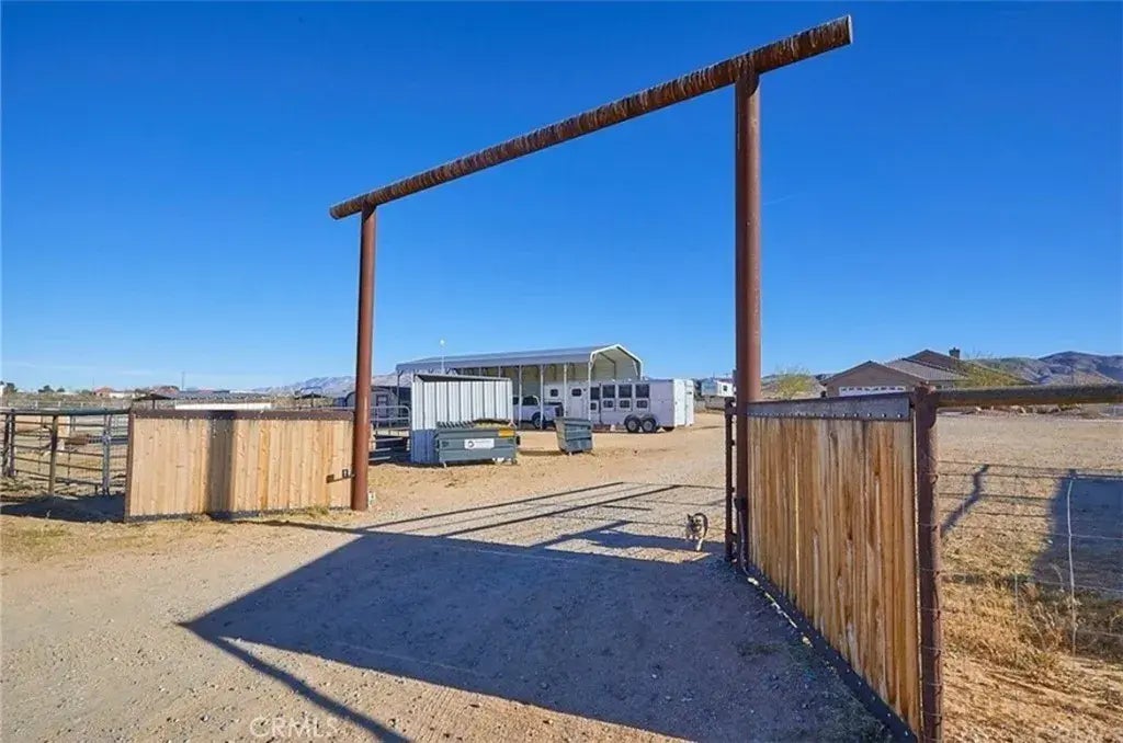 Looking for your new home in county area of Apple Valley but close to town? This home is located right off of Bear Valley Rd, is close to town but just far enough away you have some rural living. Pull up to your beautiful gated entry with automatic gates. Walk through your front door to wide open great room. Open kitchen with tons of counter space, has bar style sitting so you can enjoy company while you prepare dinner or entertain. Home has large bonus room which can be used as a 4th bedroom or an office. Master bedroom has double doors that open up to the back patio, master bath has double sinks, vanity and garden tub. Back patio is covered with beautiful views on the mountains behind you and the front yard has gorgeous evening views of the city lights. Property is fenced and cross fenced. Large carport would be great for RV parking, Truck and Trailer parking, or hay storage. 2 Shed world sheds on the property one shed is half hay storage and half tack room. To drive to property use 23077 Viento on your GPS otherwise it will not take you to the correct location.