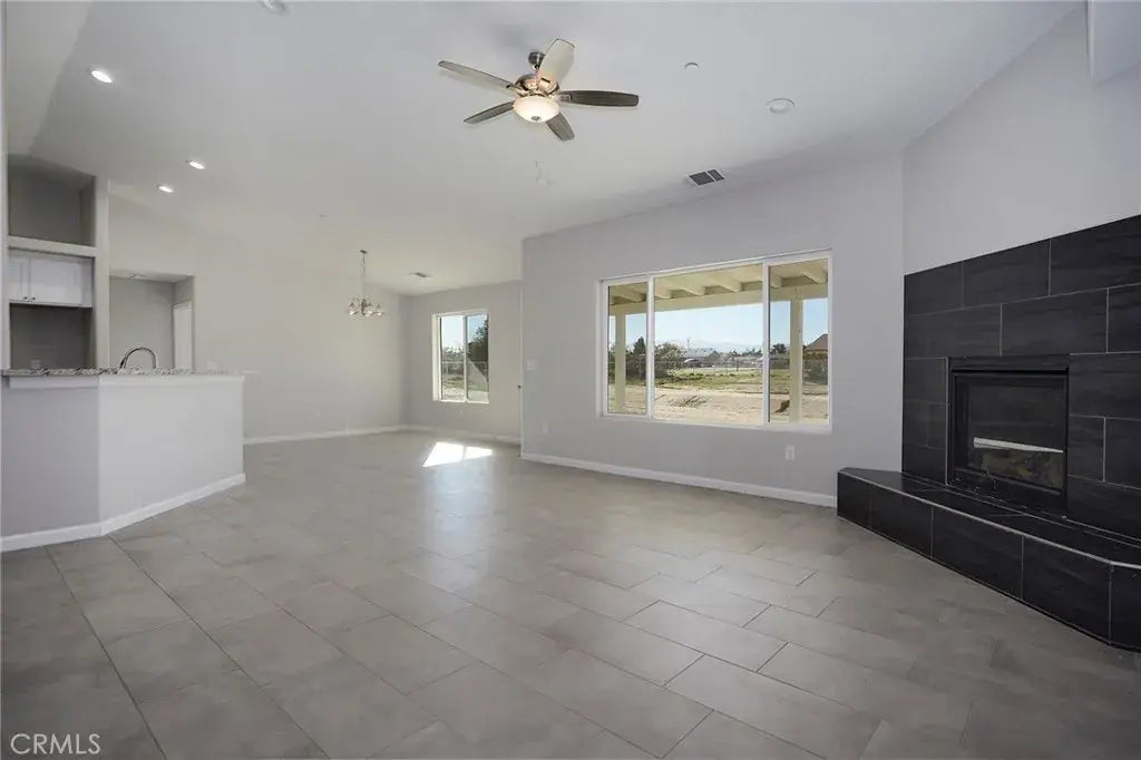 CHECK OUT THIS IMPRESSIVE NEW CONSTRUCTION HOME IN HESPERIA! This home offers approximately 2100 SF of amazing living space. Enjoy your kitchen with solid surface counters, functional cabinets, large pantry, center island and modern appliances. The gathering area is spacious and inviting. The split floorplan offers a comfortable feel with the main bedroom on one side of the house and with a bathroom to include dual sinks, separate tub and shower. The other bedrooms are off the hallway and are adequate in size and share a bathroom. Next to the indoor Laundry is also a half bath that is great for guests. There is a total of 4 Bedrooms and 2 Bathrooms. Also, there is plenty of parking in the 3 car garage. Enjoy the desert weather under the covered patio overlooking a large lot. The property line goes beyond the fencing. Solar panels that are owned are included and installed at the minimum standards. Take a look at this Amazing Home!