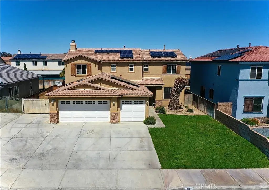 Welcome to this spacious and sunlit two-story beauty thats ready for your TLC to move in and make it your own! This 5-bedroom, 3-bath home is full of charm and modern comfort, starting with a bright and airy living room thats drenched in natural light. Additionally downstairs, you'll find a convenient bedroom and full bathroomperfect for guests or a home office. The open-concept kitchen is ideal for both cooking and entertaining, with generous counter space, a center island, and rich wood cabinetry that flows seamlessly into a cozy family roompre-wired for surround sound to elevate your movie nights. Upstairs, the primary suite is your personal escape, complete with ample closet space and a luxurious en-suite bathroom featuring a walk-in shower, soaking tub, and dual vanities. Step outside into your private backyard oasis! The sparkling pool and soothing jacuzzi are perfect for weekend get-togethers, summer BBQs, or simply unwinding after a long day. Bonus perks include solar panels for energy savings, gated RV parking, a 3-car attached garage, an oversized driveway, and a full laundry room. This home truly has it allspace, style, and standout features inside and out. Come see it for yourself and fall in love!