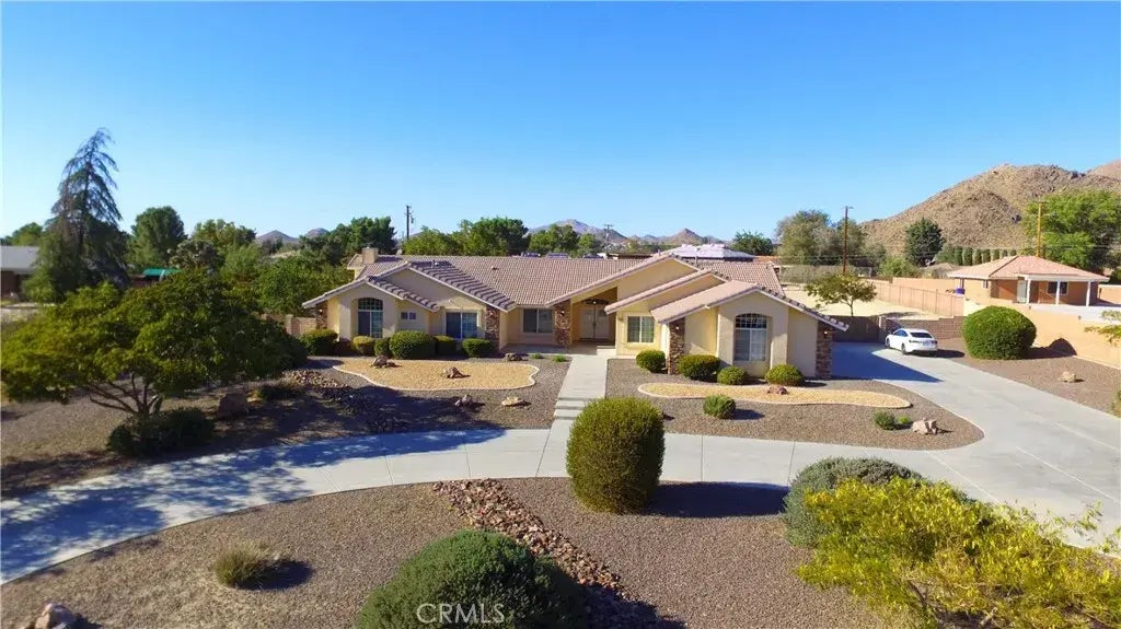 Charming Custom Built Home located across the street from AV Golf Course and surrounded by many Estate Properties. Circle Drive and long walkway leads to the Double Door Entrance. Spacious Tiled Entry opens to the Formal Living and Dining Rooms. You'll love the Gourmet Kitchen with some new appliances, a Bkf. Bar, Granite Counters, many Glass Front Custom Cabinets and 2 Walkin Pantries. Casual Nook and Open Kitchen brings everyone together in the spacious Familyroom with Stone Corner Fireplace, High Ceilings, wall of windows, and French Door to Patio. Two luxury Baths conveniently located on one side of home along with 3 Spacious Bedrooms with walkin closets. Master Suite is located on the other side of the Entry with a Fireplace & Sitting Area, an 8' slider to the Patio, and two huge walkin closets. Luxury Master Bath with Jetted Tub, 2 sinks, Tiled Walkin Shower with 2 shower heads and a separate toilet room. Freshly Painted Patio has a new Roof, exterior paint on the Fascia, Eaves and Exterior doors. Interior of home has also been painted including walls, 6"baseboards and all Interior solid-core doors. Plenty of room for Entertaining with a 91' covered Patio with views of large trees, shrubs, and rockscape. Attached 4-Car Finished Garage has a Cathedral Ceiling, 2 large windows, recently painted inside including concrete floor, two insulated garage doors and garage door openers. Exterior walls of home are 2X6 construction. 2 Heaters and AC units plus ducted Evaporative Cooler with upducts. Home is located near Hospitals, Shopping Areas, Churches, Schools, Town of AV Offi