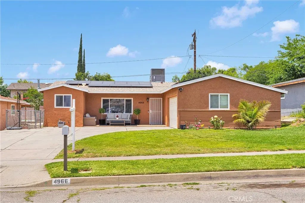 Step into this turnkey mid-century gem! Built in 1955 and fully modernized, this 1,760 sqft home offers four spacious bedrooms and two updated bathrooms on a generous 7,200 sqft lot. Located on a quiet, low-traffic street just two blocks from the districts top-rated elementary school, it blends vintage character with todays must-have amenitiesincluding leased solar panels, a Tesla EV charger, upgraded 200-amp electrical panel, newer roof and HVAC, all designed for near-net-zero energy living. Inside, the residence balances timeless mid-century charm with practical cabinetry, flooring, and layout. Professional updates ensure minimal maintenance, while the generous bedrooms and living areas create an ideal space for family life and entertaining. The floor plan flows logically from room to room and is ready for personalization. Parking and storage needs are addressed with an attached two-car garage and an extra-wide concrete driveway that accommodates multiple vehicles, plus space for an RV or boat. The upgraded electrical system, with its high-capacity panel and Tesla charger, anticipates modern demands and home expansion opportunities. Leased solar panels remain under warranty and are transferable, providing green energy benefits, and the newer roof and HVAC enhance the homes efficiency and comfort. Recent plumbing upgradesnow under warrantyhave been completed in the kitchen, laundry area, and clean-out lines, ensuring peace of mind and low upkeep. Outside, the backyard offers mature lemon and pomegranate trees, a covered patio with a natural gas hookup for a built-in barbec