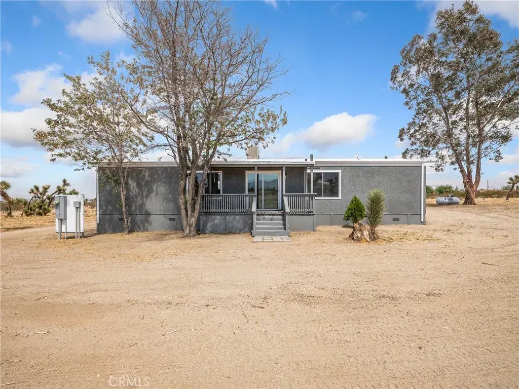 Newly remodeled and renovated throughout! This manufactured home has 3 bedrooms and 2 baths on a spacious 2.29 +/- acre property that is fully fenced and offers 1,020 +/- square feet for the entire family. This property has just been updated with new paint inside and out, new flooring throughout with luxury vinyl in most of the home and carpet in the bedrooms, brand new kitchen with new shaker cabinets with soft close hinges, white quartz counters, and stainless steel appliances. Additionally, the bathrooms have been updated with the primary bath offering dual vanities both bathrooms offer new, modern fixtures. The property has several mature trees around the home, includes a convex container for storage, has a lot of space to add animal facilities or additional outbuildings. The property is located a not too far from paved road and offers a great location with very quick access to town. The property is zoned for horses and located within the Snow Line School District.