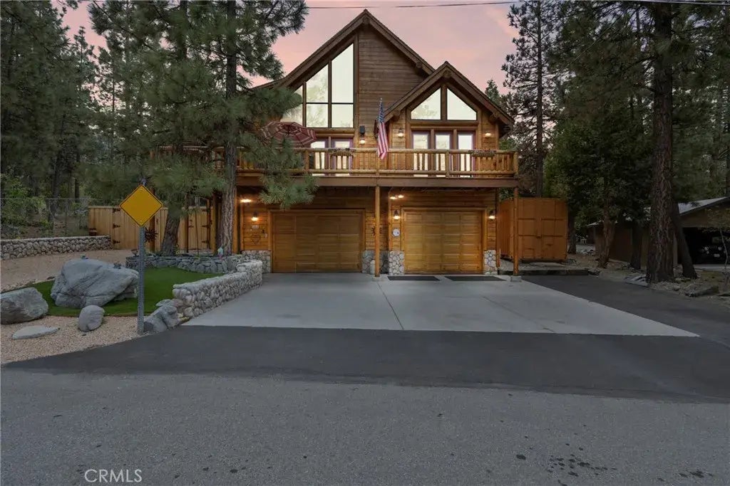 Mountain stunner!! 2400 square feet, 3 beds, 3 1/2 baths, 1400+ square foot garage (best garage in Wrightwood) with soaring ceilings and windows, and modern amenities such as solar (seller to pay off during escrow) A/C, Soft water system, Elite Series water filtration system, expansive wrap around deck, RV access, 220V in garage for the E car, spacious main floor primary bedroom and en-suite, lots of outdoor space, balconies and views galore.... and tons of pride of ownership!!! One of the most sought after properties in the Wrightwood, this exquisite property features rich character, warmth and charm with this stunning log cabin and cedar home which is neatly nestled in the Jeffrey pines of the Eastern San Gabriel mountains. Built for connection, comfort and making memories, this home offers ample outdoor space to enjoy the beauty and tranquility of the Mountains. 15 acres of untouched land to the South and West offer peaceful forest views and endless hiking and nature watching possibilities. Sunsets, snow fall, quiet mornings yet a quick 10 to 15 minute walk to the village and 5 minute walk to the Wrightwood Country Club make this property ideally located but not too far off the beaten path. The main floor features a grand Great room and ample natural light, with nearly 30 foot tall ceilings and windows, wood burning fireplace with air recirculator, an amazing open feel between kitchen, living and dining, and multiple options to get out onto the front deck. Kitchen is open and features granite and stainless steel appliances, large chef's oven, eat in kitchen bar. also on