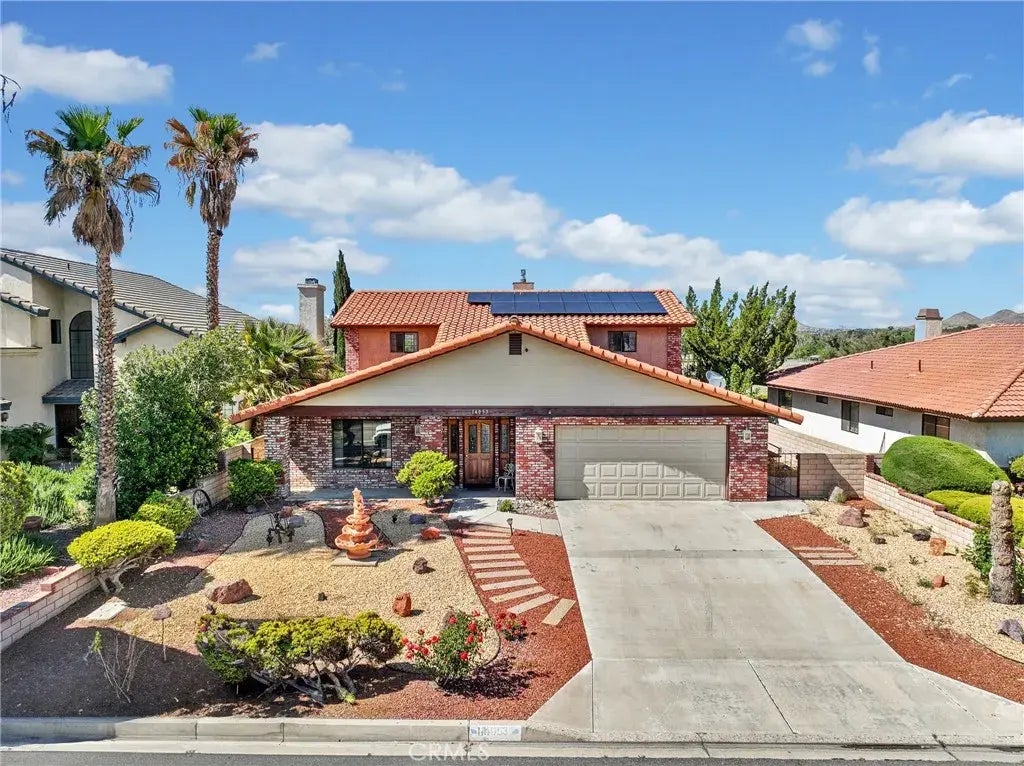 What a view! This home is in the private community of Spring Valley Lake with 24 hour security, private lake access, private golf course and so much more. Schools and shopping are very close by as well as Mojave Narrows Park. The home has a tile roof, 2 car attached garage, tile and carpet flooring. There is a formal living and dinning room. The kitchen is open to the nook and family room. There is a large covered patio both up and down stairs to take in the view of the valley and park. One large bedroom and bathroom downstairs as well as a large laundry room. Upstairs there are two large bedrooms and a balcony to view the park that is breathtaking...