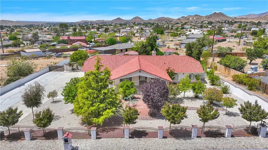 Welcome to 16158 Rimrock Rd, Apple Valley a true one-of-a-kind custom home in one of the areas most sought-after neighborhoods! This is the first time ever offered for sale, presenting an incredible opportunity to own a lovingly maintained, standout property. Set behind block and iron fencing, you'll enjoy complete privacy with secure gated backyard parking and a grand circular driveway with oversized covered parking. Every inch of the grounds is BEAUTIFULLY LANDSCAPED with mature trees, lush grass, rock features, fountains, and a tranquil, PRIVATE WATER STREAM running through the backyard your own backyard retreat! Inside, you're welcomed by soaring ceilings, elegant tile flooring, and an inviting layout designed for both relaxing and entertaining. The formal living room offers a classic touch, while the cozy family room features a charming wood-burning stove. The custom kitchen impresses with granite countertops, stainless steel appliances, and a light-filled breakfast nook perfect for morning coffee. The thoughtful floor plan includes a SECOND PRIMARY ROOM with a private bathroom ideal for multigenerational living, guests, or extended family. All additional bedrooms are located together on the opposite wing, each featuring tall ceilings, decorative shelving, and ample closet space. The spacious primary suite is a true retreat, offering stunning stonework, a luxurious walk-in shower, a relaxing soaking tub, and a large walk-in closet. Step outside to your personal paradise with breathtaking mountain views, an expansive covered patio with stone accents, an OUTDOOR FIRE