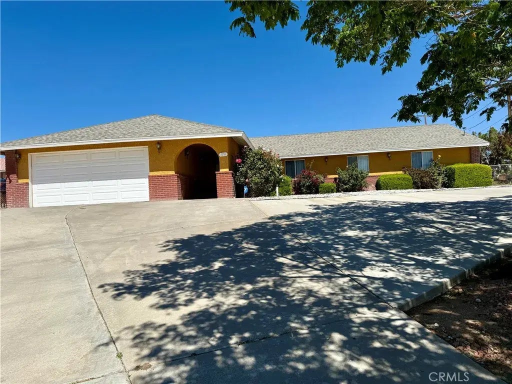 Nice Hesperia Home Custom build 2032 sq ft approx. 3 bedroom 2 baths plus an office converted into a 4th bedroom, spacious Living room with a fireplace, family room with French doors connecting to hallway and living room, formal dining room, inside laundry room, tile and wood floors, walking pantry, new kitchen Quartz counter tops tile floors, big master bedroom, master bathroom has 2 sinks tub and separate shower 2 car garage, front rock landscaped beautiful grown tree, circular dive way corner home, covered patio, gorgeous view of the mountains, back yard fenced