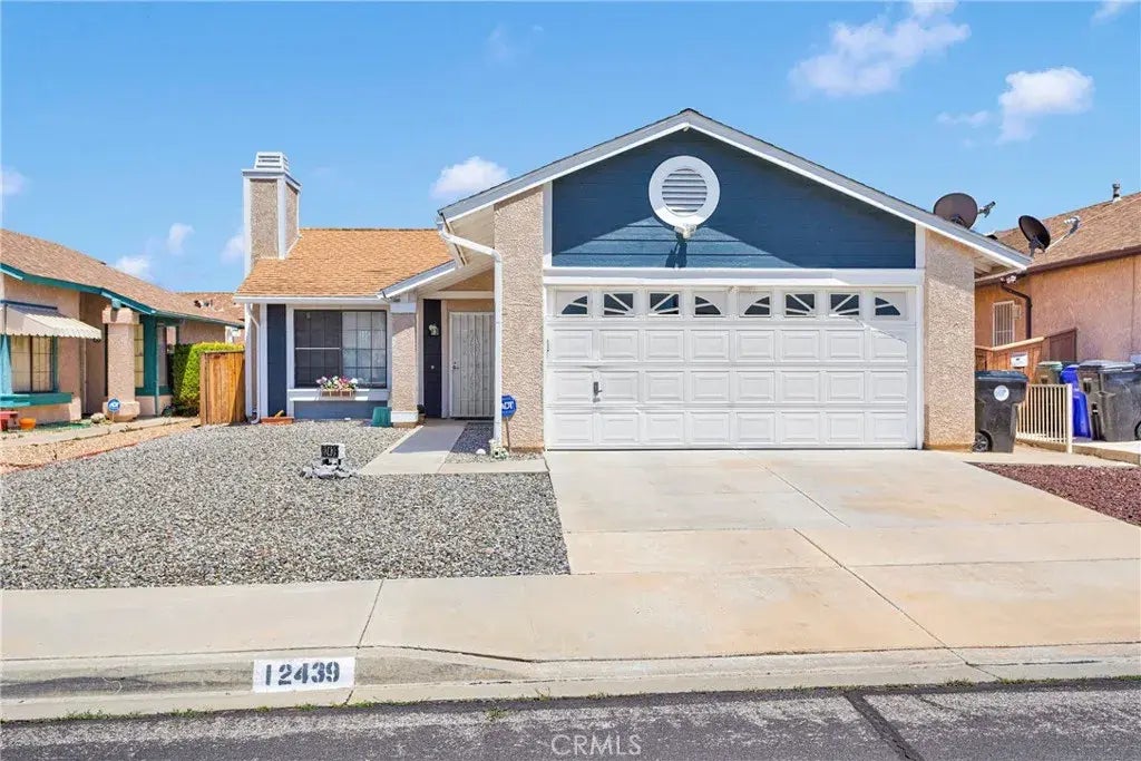 **This is a MUST- SEE for 55+ ***Welcome to this charming 2-bedroom, 2 full bath home in a 55+ community, WITH NO HOA fees. The home interior was recently upgraded, painted, and has beautiful wood laminate flooring. An open floor plan with a nice fireplace in the living area. The front yard is rocked for lower water bills and the backyard as a full covered patio perfect for outdoor seating. Plenty of parking in the 2-car garage and extra parking in the driveway. This property is walking distance to shopping, restaurants, and Desert Valley Hospital. Both bedrooms are generous sized with sliding closets, and the master bathroom has a walk-in shower. Second Bathroom has bathtub with safety handles and some light switches lowered for easy access. Indoor laundry room with washer and dryer that with remain. The home is also ideal for commuters with fast access to bear valley road leading to the 15 freeway or family members who would like to visit.