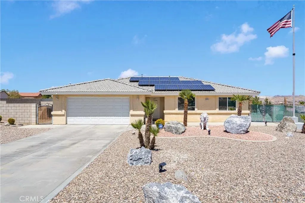 Welcome to 15044 Odell Ct A Rare POOL HOME with Unmatched VIEWS! Tucked away at the end of a quiet CUL-DE-SAC, this beautifully maintained 3-bedroom, 2-bathroom POOL home offers the perfect combination of privacy, comfort, and breathtaking views. Positioned high above the valley, enjoy an unobstructed panoramic outlookideal for peaceful mornings, sunset dinners, or watching fireworks light up the desert sky on the 4th of July. Step inside the 1,353 SqFt of thoughtfully designed living space, where tall ceilings, abundant natural light, and decorative built-in shelving create an inviting and spacious ambiance. The open-concept kitchen and dining area boast well-kept cabinetry and counters, all facing toward the sparkling pool and expansive viewtruly the heart of the home. The home sits on a generous 18,841 SqFt lot that has been FULLY LANDSCAPED and cross-fenced for added privacy. Take full advantage of RV parking with hookups, a covered patio perfect for entertaining, and a storage SHED for tools or seasonal dcor. Mature palm trees, bold rock accents, and outdoor lighting add to the property's resort-like atmosphere. Additional features include solar system for energy efficiency, Oversized 2-car garage, Walk-in closet in the primary bedroom, Long private driveway, and Fountain features in the pool. This is more than a homeits a lifestyle. Dont miss the chance to own one of the few pool homes in Victorville with a view like this.