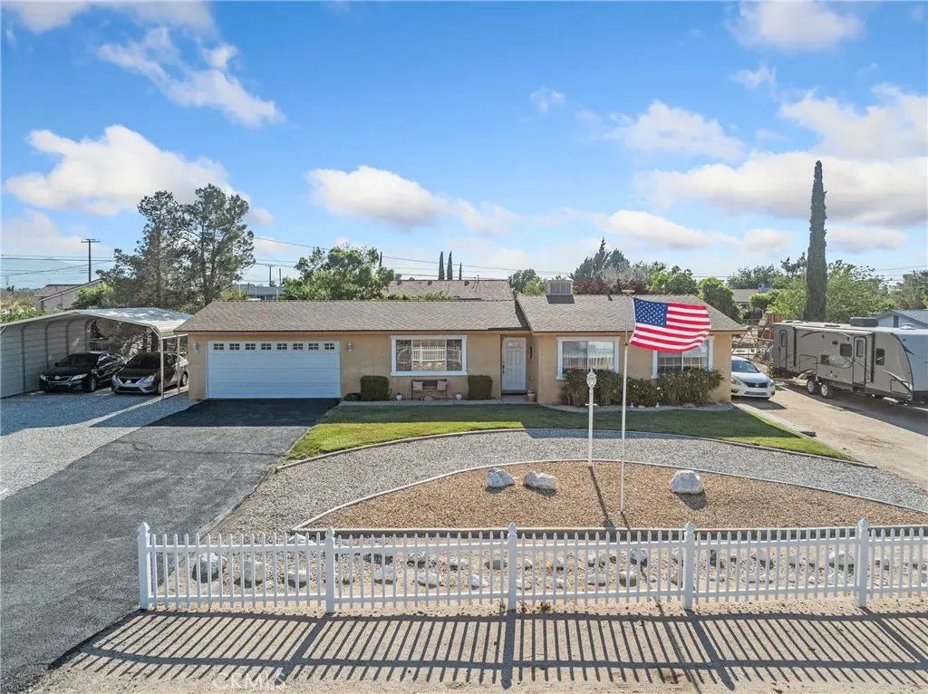 Charming 3-Bedroom Home with Bonus Space and Exceptional Outdoor Amenities Welcome to this well-maintained 3-bedroom, 2-bath home offering flexibility with a converted garage that can serve as a potential 4th bedroom, workshop, or easily be returned to a full 2-car garageroll-up door still in place! Situated on a beautifully landscaped lot with lush green grass and auto sprinklers in both the front and back yards, this property boasts fantastic curb appeal. The fully fenced and cross-fenced backyard is ideal for outdoor living and play, complete with firepit, basketball court, a playground and playhouse that stay with the home. Enjoy the convenience of a large metal carport, circular driveway, and ample parking, including designated RV parking. Inside, youll find a comfortable living environment with central heating and air conditioning, as well as an evaporative cooler with auto-control for energy efficiency. The roof is approximately 1.5 years old, offering peace of mind for years to come. Additional highlights include: Indoor laundry area Proximity to freeway access, schools, and parks Spacious layout with room to grow Whether you're looking for extra space, outdoor features, or a move-in ready home in a convenient locationthis property checks all the boxes!