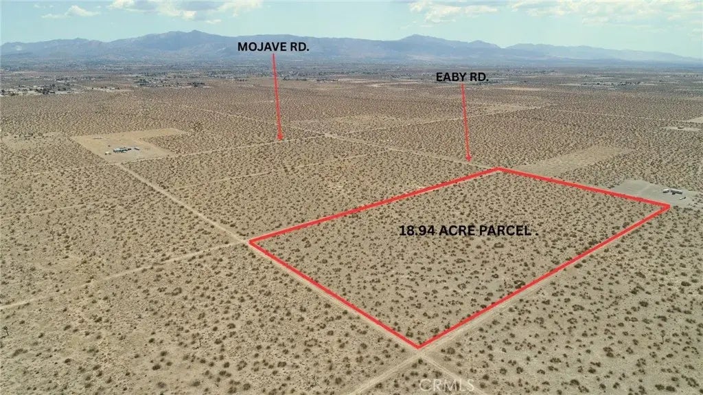 This property is easy to find, easy access from Paved Sheep Creek Rd. go 1.8 mile east to Eaby Rd, then make a left and go 0.2 mile, you will be approximately on the south west corner of the property, Discover the potential of this flat and rectangular lot with approximately 18.94 acres offering a unique opportunity for developers, investors or those seeking a serene desert retreat and build your dream home. This exquisite property boasts breathtaking panoramic views of the desert landscape offering the opportunity to realize your vision of a dream home, with peaceful countryside living within easy reach of shopping centers and schools, all while conveniently located close to Palmdale Rd which is a main road. Property lines are Eaby Rd to the west, Schlitz Rd to the east and Lupin Rd to the south, very easy to subdivide, The High Desert is now the future home of the recently approved High Speed Train from Apple Valley to Las Vegas and to the south to Rancho Cucamonga. The project is expected to break ground in the Victor Valley soon and be completed in over the course of the next few years, this projected is expected to bring in jobs and boost the economy of the High Desert.