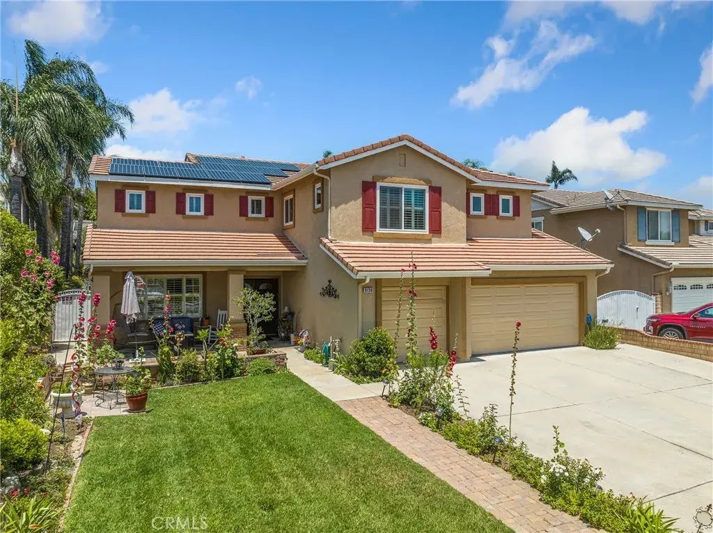 Welcome to 9130 Mignonette Street, a beautifully upgraded pool and spa home in the sought-after Alta Loma neighborhood of Rancho Cucamonga. This spacious four-bedroom, three-bathroom residence features a large upstairs loft and a versatile main-level office, offering flexible living in a serene setting with stunning mountain views and convenient access to the 210 freeway. The home welcomes you with an expanded brick front patio and an open floor plan enhanced by vaulted ceilings, wide hallways, and abundant natural light streaming through new south-facing vinyl windows. Plantation shutters throughout add timeless elegance, while new luxury vinyl plank flooring on the first floor and stairway gives a modern and durable finish. At the heart of the home is a fully remodeled kitchen boasting quartz countertops, custom cabinetry, a center island, KitchenAid stainless steel appliances, and a double ovenperfect for cooking and entertaining. The kitchen flows seamlessly into the family room. The main floor also includes a half bathroom, laundry room, and a dedicated office space that can easily convert into a 5th bedroom or a private downstairs suite when combined with the nearby bathroom. Upstairs, the primary suite offers breathtaking views of the backyard and San Gabriel Mountains. It features a freshly remodeled en-suite bathroom with a walk-in shower, soaking tub, dual vanities, and a spacious walk-in closet. The large loft area provides flexible space for a media room, home gym, or play area. Three additional generously sized bedrooms share a stylishly updated hall bath with