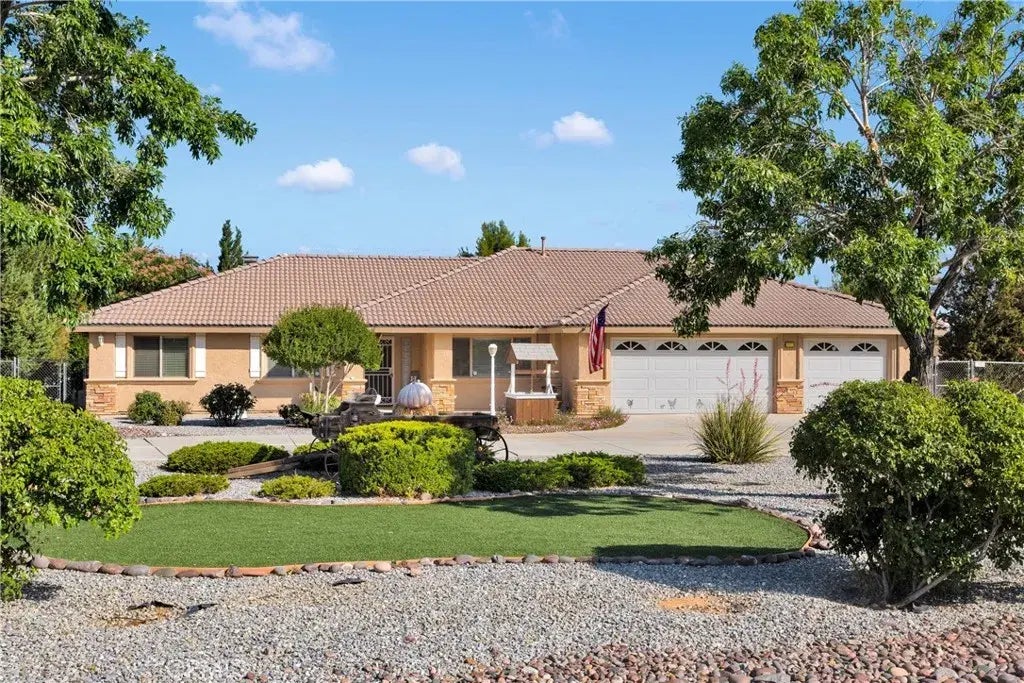 Welcome to this charming, farmhouse-style retreat situated on a SPACIOUS CORNER LOT - offering comfort, character, and convenience in every detail. The property has well-maintained landscaping, featuring a LUSH GARDEN with a variety of mature and fruit bearing trees making this an outdoor lovers dream! A wide circular driveway leads to a 3-CAR GARAGE, while a separate RV gate provides direct access from the street to a LARGE METAL RV CARPORTideal for storing recreational vehicles or extra parking. Inside, the OPEN CONCEPT floor plan is warm and inviting, with a GAS, WOOD-BURNING FIREPLACE as the heart of the home. The spacious layout includes 4 bedrooms and 3 bathrooms, with a possibility of a 5th bedroom and comes FULLY FURNISHED, making it truly move-in ready! In the kitchen, you have direct sight lines to the living area and views of the beautiful backyard. The expansive primary suite offers a generous WALK-IN CLOSET, DUAL SINK VANITIES, a separate WALK-IN SHOWER and SOAKING TUB. The laundry room is equally impressive, with abundant CABINETRY FOR STORAGE and a dedicated counter space for folding and organization. Practical upgrades include PAID-OFF SOLAR PANELS and a WATER SOFTENER SYSTEM, offering energy efficiency and low utility bills. Enhance outdoor living and entertain with ease in the FULLY ENCLOSED SCREENED-IN PATIO, enjoy grilling with the BUILT-IN BBQ ISLAND or simply relax and savor the serene backyard views. Conveniently located near Highway 18 and the 15 Freeway, this home is PERFECT FOR COMMUTERS seeking a peaceful, private setting without sacrificing acces