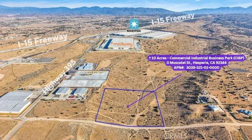 Prime 10-Acre Industrial Land CIBP Zoned | Off I-15 Freeway Excellent location surrounded by New developments like Amazon, Modway (1M SF), Fellowship Warehouse, and Rush Truck Centers. Just minutes from Hesperia Commerce Center One (3.75M SF, active) and the upcoming Hesperia Commerce Center Two (3.75M SF, in process). Nearby amenities include Pilot, Arco, and truck parking. Sams Club recently acquired land nearbygrowth is booming. Ideal for logistics, warehousing, or investment.
