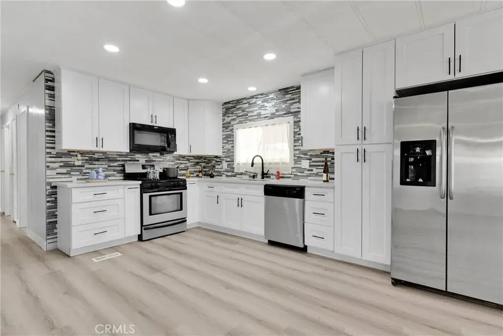 AMAZING OPPORTUNITY to own this cozy and charming manufactured home on a permanent foundation on a its own land. This home is completely remodeled and ready for you to move in! Everything from the kitchen to the restrooms, flooring was all renovated. Coupled with central air, it offers a spacious, open layout perfect for modern living. With 3 bedrooms and 2 bathrooms, theres plenty of room for everyone. The master suite features a spacious double vanity and large tub for relaxation. While the exterior of the home comes with a shed for storage or your own personal workshop! There is no space rent or HOA required for this this home and is close to a golf course, the freeway and local shopping centers. Title shows 2 bedroom 2 bath .