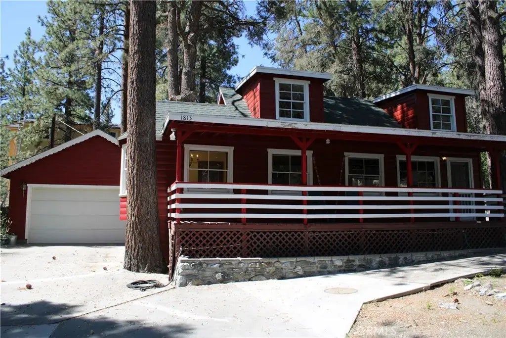 Wrightwood charmer on a corner lot!! Featuring 2 bedrooms, 1 full bathroom and a 2 car garage with the most adorable front porch you could ask for! Large concrete driveway, fenced rear yard and curb appeal galore! Location is ideal, perfectly situated between frequently plowed County roads in the winter and close but not to close to State highway 2 and Lone Pine Cyn Rd for easy commuting options. Centrally located and an easy 10 minute walk to the heart of the Village with shops and restaurants and Summer festivities. Feel the relaxing vibes with your wood burning fireplace that opens to the kitchen and ding area, and a large bedroom on the main floor that easily fits the Cali King. Full bathroom on the main level as well, with a slider off the hall to your relaxing rear deck nestled amongst the pines. Upstairs, a large loft bedroom with peek-a-boo dormer windows can easily sleep 4, perfect for the grand kids. Looking for a full or part time rental option to earn some income vs. mortgage payment? This is the PERFECT HOME for a weekend getaway, with plenty of parking, basketball hoop for the kiddos or the young at heart! Come see one of the most adorable homes Wrightwood has to offer!